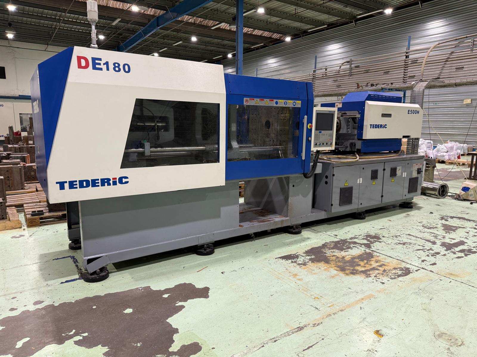 La Tederic 180 T est une presse horizontale d’injection plastique de type DE180 E500H, destinée aux applications industrielles de plasturgie nécessitant une force de fermeture plus élevée et une capacité d’injection renforcée.